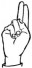 На ћирилици написано ДРАГАНА ПЕЈЧИЋ састоји се из 13 слова [?]. Исписано ћириличном једноручном азбуком за глувонеме: